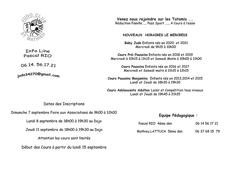 HORAIRES DES LA RENTREE DE SEPTEMBRE 2025